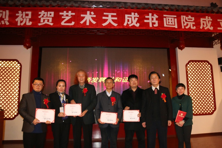 艺术天成书画院理事长、新疆野马国际集团公司董事长陈志峰,艺术天成书画院理事长、中首华奥集团投资有限公司董事长李晓东,北京龙地友谊文化传播股份有限公司创办人胡燕青,艺术天成书画院副理事长、黑龙江三江美术职业学院院长王英海,艺术天成书画院副理事长、首钢集团工程公司副总经理苏显华,艺术天成书画院副理事长、北京中协正阳影视文化有限公司董事长姜曙光,艺术天成书画院理事、荆盛和宣纸纸业有限公司董事长彭灏,露宴天下酒业董事长蒋宏勇。
