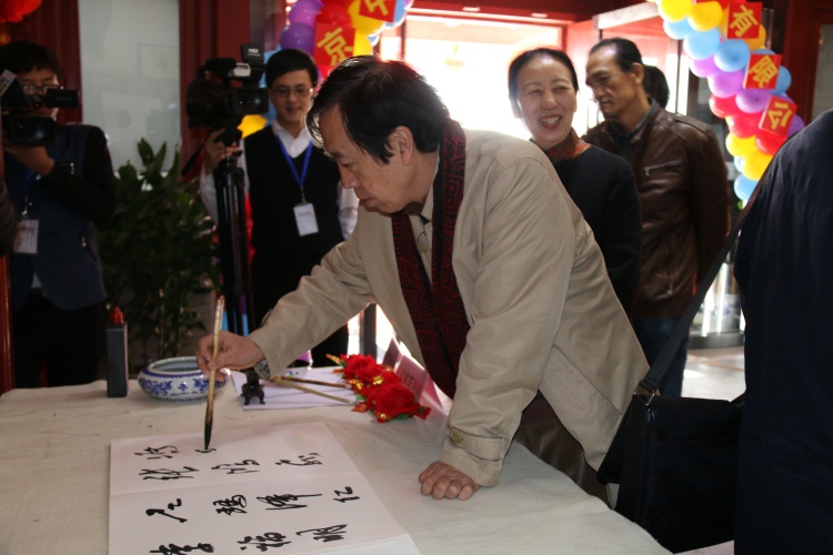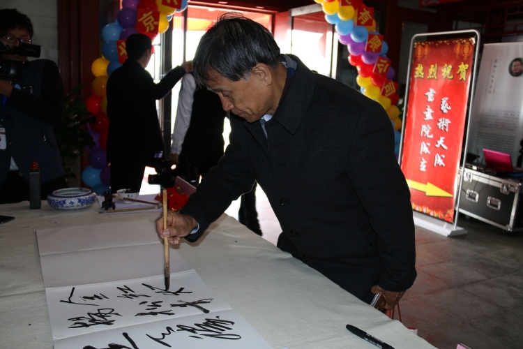 艺术天成书画院总顾问覃志刚、宣布艺术天成书画院成立、王仲院长和易洪斌院长一同为艺术天成书画院揭牌。