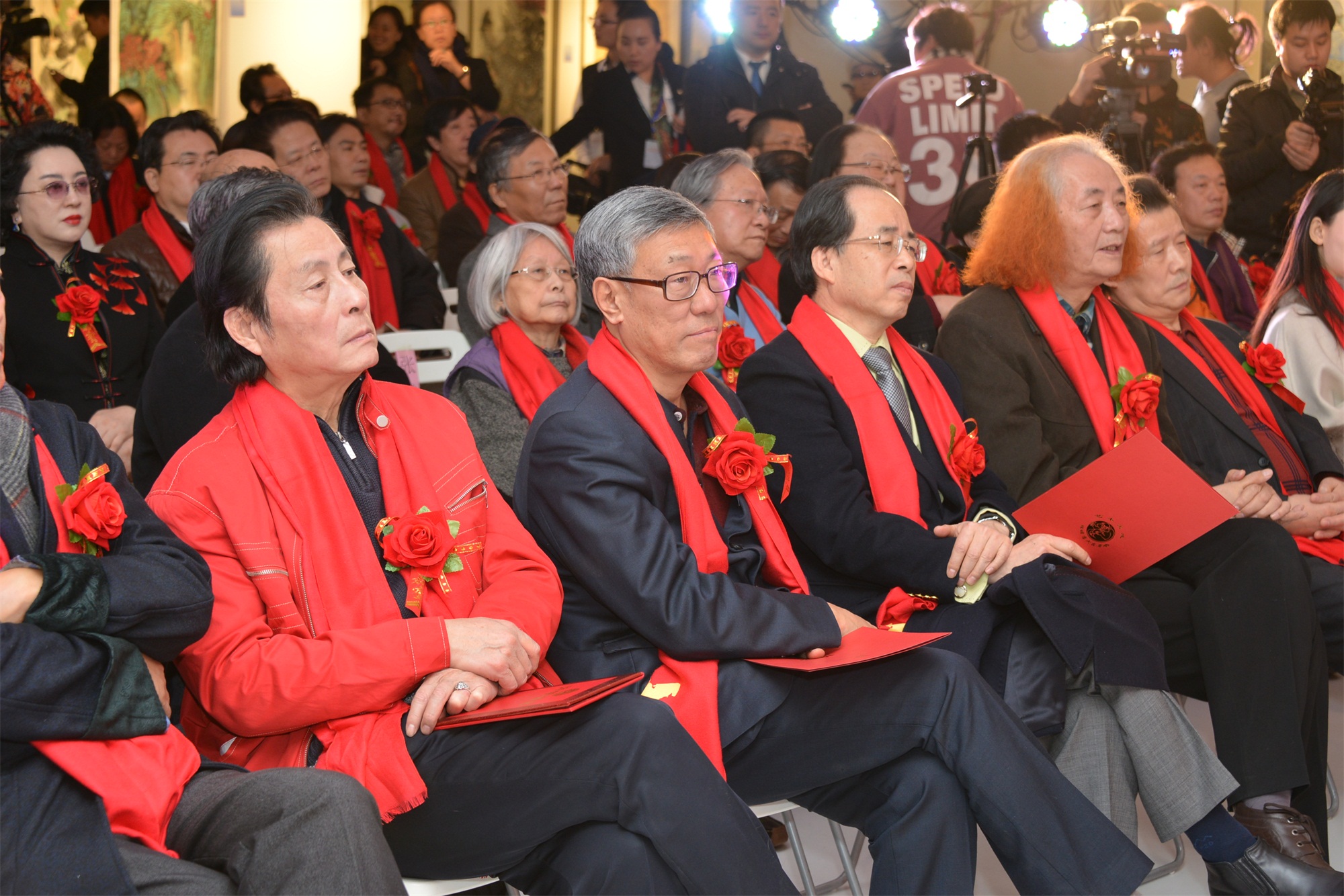 出席此次书画大展暨文艺演出的领导、艺术家、企业家有“上合组织”副秘书长王开文,中国长城学会副会长董耀会,全国政协委员、中国书协顾问、全国友协国际艺术交流院院长、艺术天成书画院总顾问言恭达,中国文联美术艺术中心主任、中国美协理事、艺术天成书画院副院长丁杰,中国行政管理协会会长王澜明,中国文化管理协会副主席李小磊,原最高法院组织部部长赵金铎,中国长城学会副秘书长王建平,港澳台美协主席蔡豪杰,中国美术家协会理论委员会副主任、前《美术》杂志主编、艺术天成书画院院长王仲,中国美术家协会理事、中国画马研究会会长、艺术天成书画院院长易洪斌,《美术观察》杂志主编、艺术天成书画院副院长李一,清华大学美术学院教授、博士生导师、艺术天成书画院副院长刘临,清华大学美术学院教授、中国俄罗斯友好协会理事、艺术天成书画院副院长王铁牛,中国艺术研究院教授、硕士生导师、艺术天成书画院副院长郑光旭,山水文园集团董事局主席李辙,野马国际集团董事长陈志峰,山水文园集团总裁张晓梅,“龙地友谊”投资人胡燕青,董事长魏侃,“文超文化传媒”总经理、《艺术天成》杂志总编辑杨文超等。还有来自江西、浙江、河北、山西、辽宁、黑龙江等地的企业家、艺术家纷至沓来,更有孙美兰、潘世勋、于志学、王同仁、赵华胜、樊林、宋兆钦、陈醉、文国璋、姚少华、孙永舜、李小可、刘克宁、师恩钊、洪宝才、金红炜、张鸿飞、吕绍福等德艺双馨的老艺术家和中青年实力派画家冯春明、张坤山、靳文艺、陈克永、张金玲、王绿霞、杨广馨、刘选让、胡宝利、徐健、郭继英、高伟、安佳、萧丽、王利军、盛寿永、汪港清、吕维超、王世利、祁璐、刘长鑫、朱零、夏荷生、李九红、孙鸿钧、买鸿钧、张东林、叶丽美、王一帆、张延东、王君等赶赴大展现场,共同庆祝此次大展的开幕。